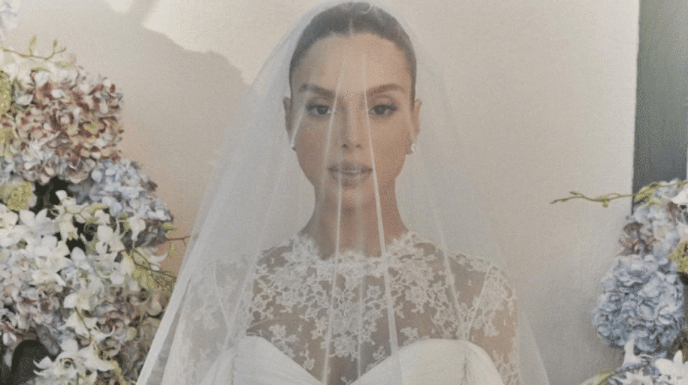 Giovanna Lancellotti compartilhou imagens em seu Instagram com um vestido longo de mangas compridas em renda, complementado por uma véu que disfarça o rosto. A legenda da atriz dizia: “Um Amor para Recordar”.