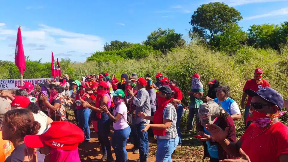 A ocupação, que visa a reforma agrária popular, tem como lema “Enfrentar as Violências, Ocupar e Organizar”.