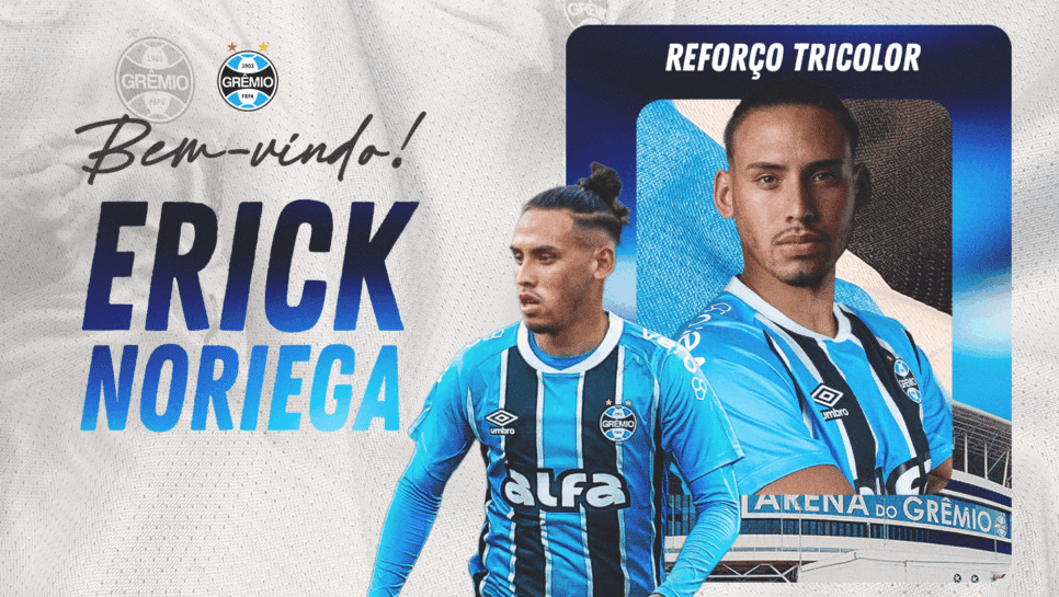 O Grêmio comunicou, na quinta-feira (21), a chegada do volante Erick Noriega, de 23 anos. O japonês naturalizado peruano vem do Alianza Lima e tem contrato com o clube gaúcho até dezembro de 2028.