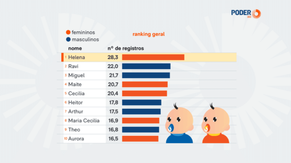 Enquanto isso, no ranking masculino, Ravi surpreendeu ao avançar quatro posições em relação a 2024, ultrapassando Miguel, que liderou o ranking no ano anterior. Essa mudança indica uma busca por nomes mais modernos e distintos entre os meninos.