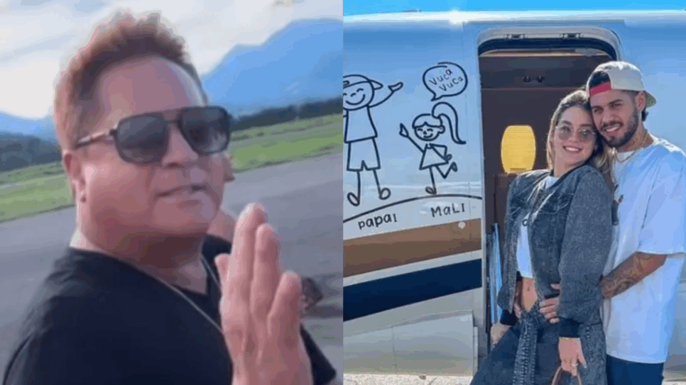 O cantor Zé Felipe foi flagrado em um jato que lhe foi dado como presente de casamento pela ex-esposa, a influenciadora Virginia Fonseca. A aeronave atualmente está sob a posse de seu pai, o cantor Leonardo, que a adquiriu, conforme informações do portal Em Off.