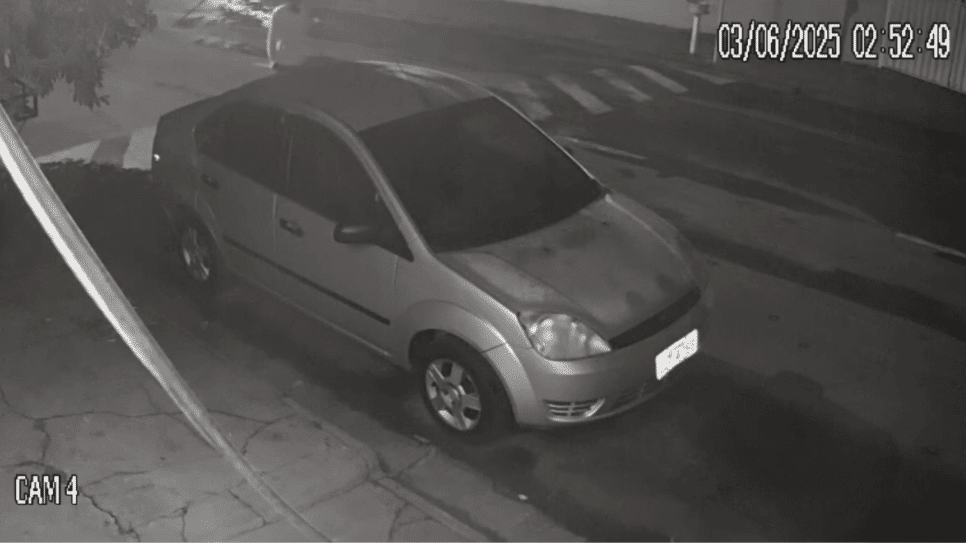 Um vídeo registrou o instante em que o homem entra no veículo para cometer o crime.
