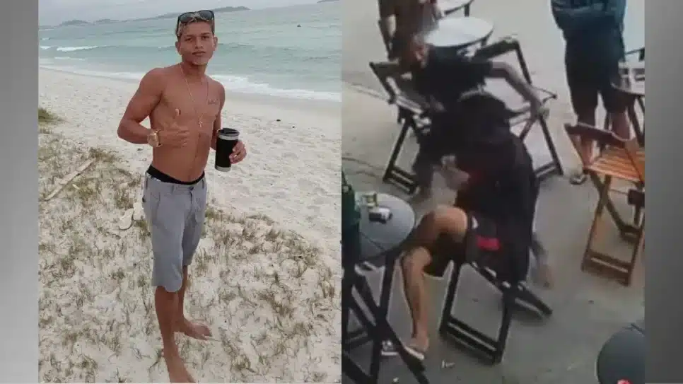 Nas imagens das câmeras de segurança, divulgadas pela CNN, observa-se o indivíduo sentado à mesa sendo agredido por dois homens que chegam em uma motocicleta. O rapaz agredido cai no chão e continua recebendo socos e pontapés até que os dois homens se retiram.