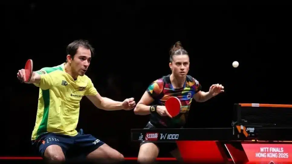 Nesta sexta-feira (12), Hugo Calderano e Bruna Takahashi finalizaram sua participação no WTT Finals de 2025, realizado em Hong Kong. Os atletas brasileiros terminaram a fase de grupos das duplas mistas com uma vitória e duas derrotas, não conseguindo avançar para as semifinais.