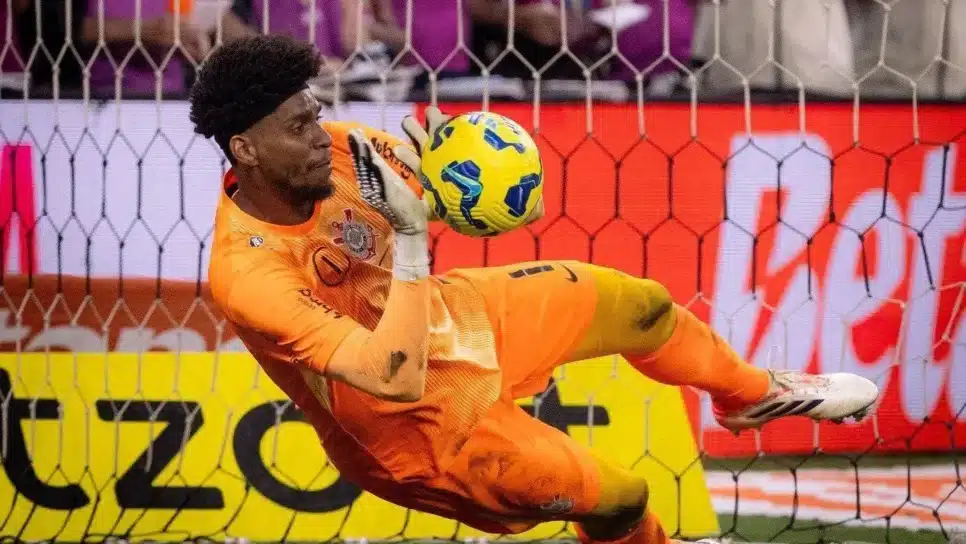 Após defender dois pênaltis, Hugo Souza comemorou a classificação do Corinthians contra o Cruzeiro neste domingo (14), na Neo Química Arena. Em entrevista após a vitória por 5 a 4 nas penalidades, o goleiro do Timão destacou que a “camisa pesou” na semifinal da Copa do Brasil.