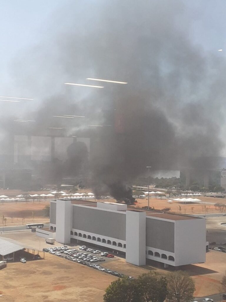 Uma coluna de fumaça preta atraiu a atenção de pessoas na região da Esplanada dos Ministérios, em Brasília, na terça-feira, 9. A Polícia Militar do Distrito Federal informou que um banheiro químico foi incendiado. Não houve vítimas.