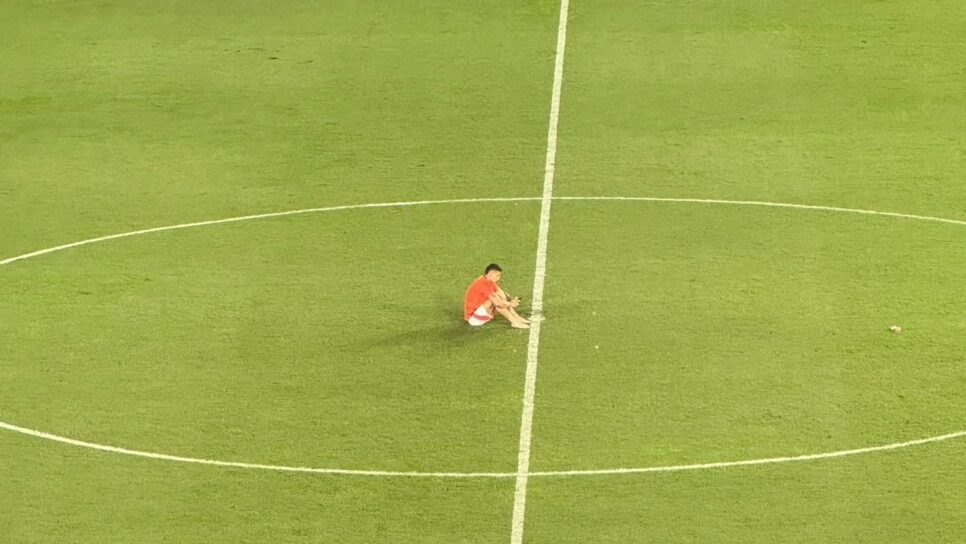 Após a vitória sobre a Bolívia por 3 a 0, que garantiu a vaga da seleção colombiana na próxima Copa do Mundo, o camisa 10 foi visto chorando sozinho no centro da grama do Metropolitano de Barranquilla.