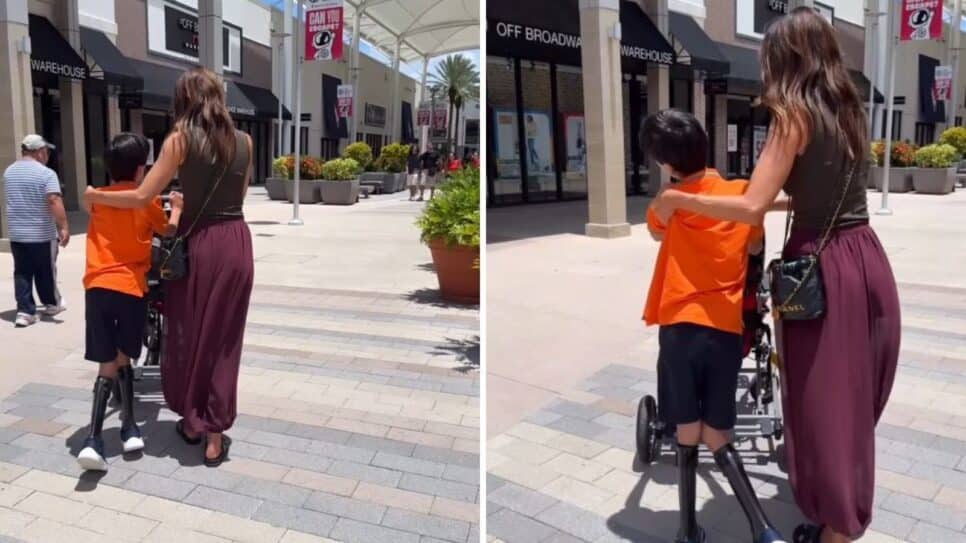 A celebridade foi vista em um vídeo publicado no Instagram ao lado do menino que andava apoiado em um carrinho. Veja abaixo.