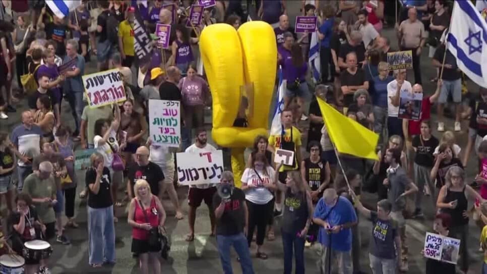 Manifestantes saíram às ruas de Tel Aviv neste sábado (12) para exigir que o governo israelense pusesse fim ao conflito na Faixa de Gaza.