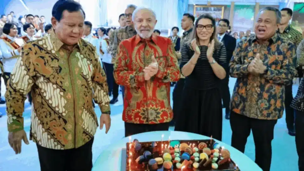 A primeira fatia do bolo foi entregue ao presidente indonésio Prabowo Subianto, enquanto a primeira-dama Janja entregou o segundo pedaço. “Finalizo o dia de hoje na Indonésia com uma homenagem pelos meus 80 anos, que completo no dia 27 de outubro, e pelos 74 anos do presidente @prabowo, celebrados no dia 17 de outubro. Um jantar cheio de carinho e simbolismo, que me emocionou profundamente. Agradeço ao presidente Prabowo e ao povo indonésio por essa acolhida tão generosa”, escreveu Lula ao compartilhar o momento nas redes sociais.