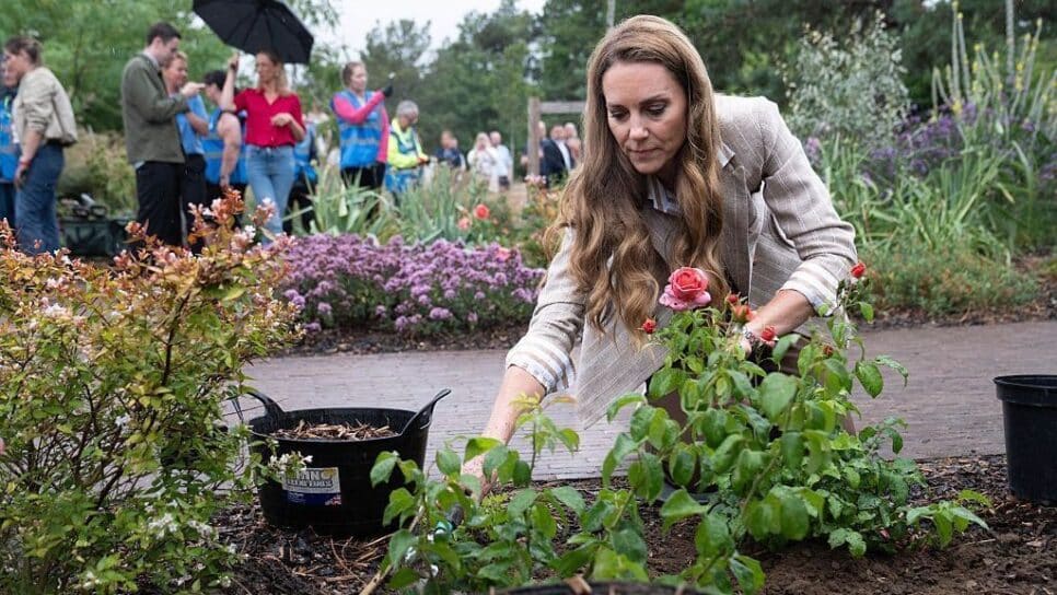Kate visitou o jardim do hospital no sudeste da Inglaterra para “celebrar o notável poder de cura da natureza”, de acordo com o Palácio de Kensington.