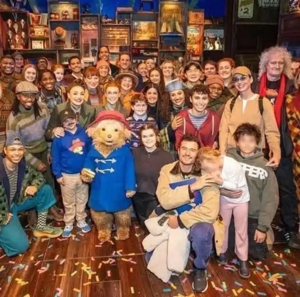 Conforme informações da revista People, eles estiveram no teatro na terça-feira (30), onde posaram com membros do elenco do musical, acompanhados também por Flynn, de 14 anos, filho de Bloom com Miranda Kerr. O grupo foi registrado em momentos de descontração após a apresentação, com a presença do guitarrista do Queen, Brian May.