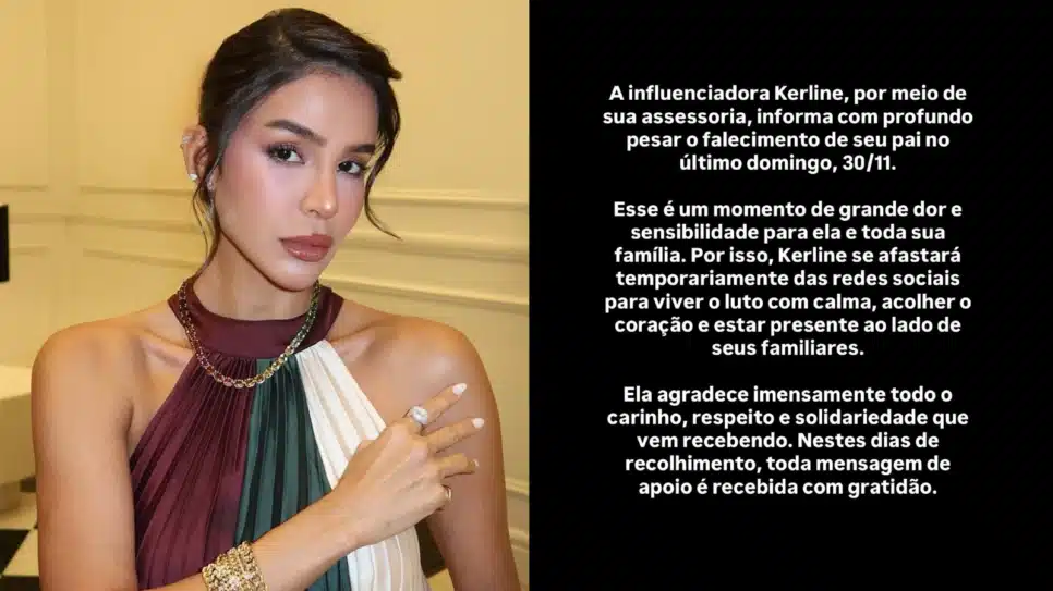 “Esse é um momento de grande dor e sensibilidade para ela e toda sua família. Por isso, Kerline se afastará temporariamente das redes sociais para viver o luto com calma, acolher o coração e estar presente ao lado de seus entes queridos”, afirmou sua equipe.