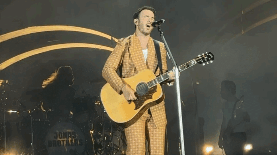 O cantor Kevin Jonas, 37 anos, surpreendeu os fãs ao apresentar sua primeira música solo durante uma apresentação dos Jonas Brothers.