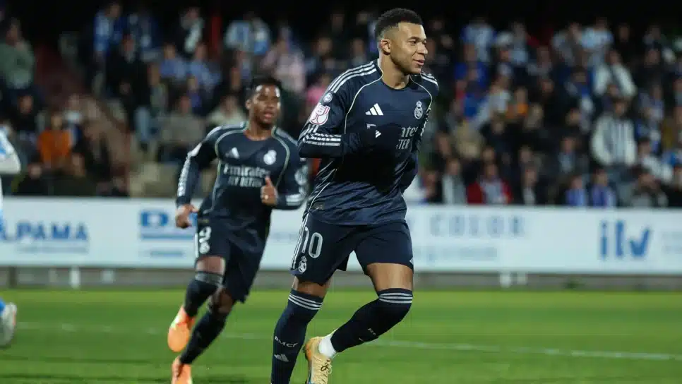 Kylian Mbappé está cada vez mais perto de igualar o recorde de gols de Cristiano Ronaldo em um ano pelo Real Madrid. O atacante francês marcou duas vezes na vitória por 3 a 2 sobre o Talavera de la Reina, da terceira divisão, nesta quarta-feira (17).