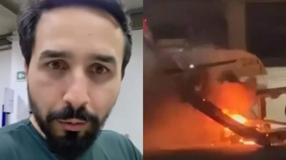 Imagens que circulam online mostram as chamas em sua proximidade, gerando grande apreensão entre os passageiros.