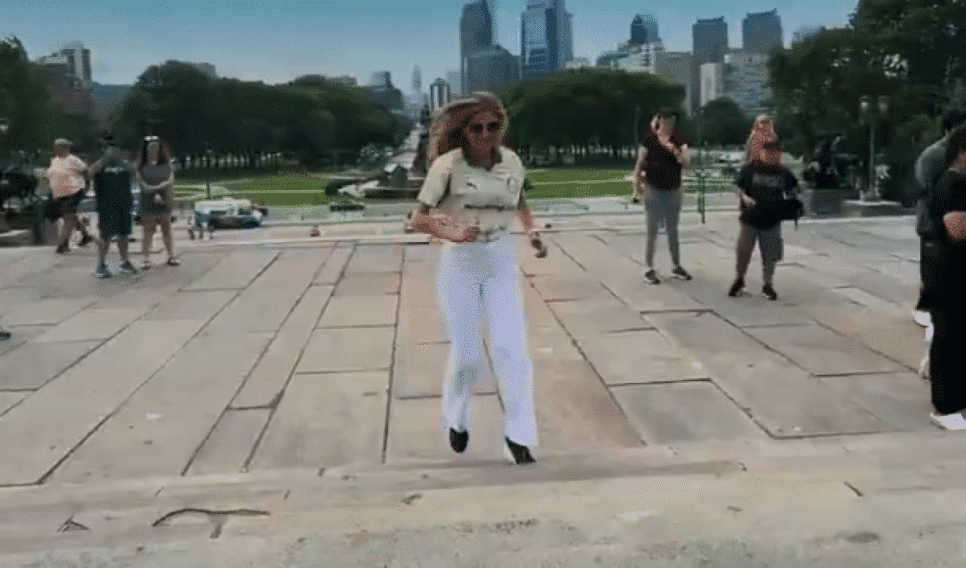 A governanta escalou os 72 degraus do Museu de Arte da Filadélfia. A cena foi eternizada no filme “Rocky”, onde o personagem interpretado por Sylvester Stallone se prepara para uma luta. Ela executa a performance acompanhada da música “Gonna Fly Now”, a mesma utilizada no filme.