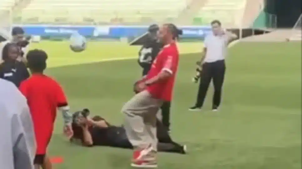 Nesta terça-feira (4), Lewis Hamilton esteve no Allianz Parque, em São Paulo, para um evento promovido pela Puma, patrocinadora da Ferrari. O heptacampeão aproveitou a ocasião para visitar o gramado do estádio e se divertiu fazendo embaixadinhas, acompanhado por um grupo de crianças.