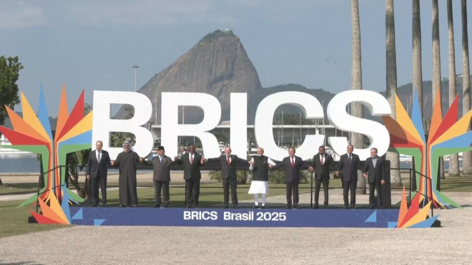 Representantes de organizações internacionais se posicionaram, na manhã deste domingo (6), para a “foto de família” da 17ª Cúpula do BRICS, que acontece no MAM (Museu de Arte Moderna) entre hoje e amanhã, no Rio de Janeiro.
