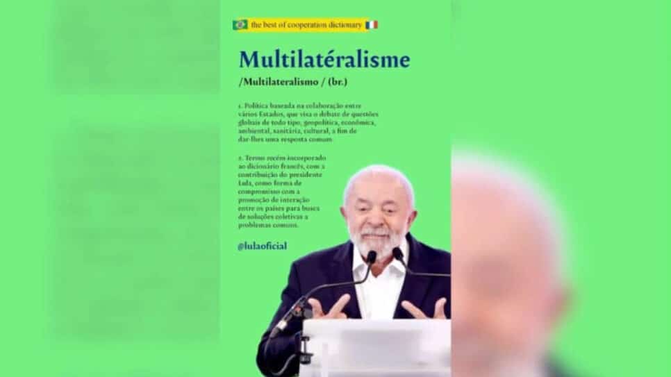 O presidente Luiz Inácio Lula da Silva (PT) compartilhou em redes sociais na quarta-feira (11.jun.2025) um meme comemorando a inclusão da palavra multilateralismo no dicionário francês.