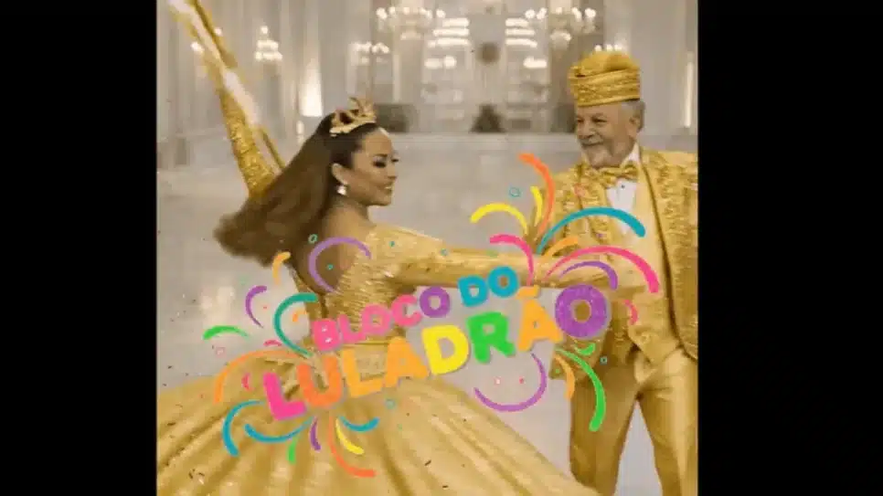 O vídeo, aparentemente criado com auxílio de inteligência artificial, mostrava carros alegóricos com o petista e o líder venezuelano deposto (PSUV, esquerda), além de cenas do presidente com a primeira-dama em uma piscina e dançando com roupas que lembram uniformes de presidiários.