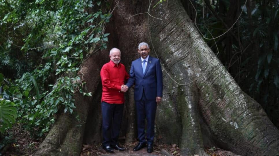 A escolha do Museu Goeldi, uma das instituições científicas mais antigas da Amazônia, foi um gesto para a diplomacia ambiental. As fotos oficiais dos encontros foram feitas diante de uma sumaúma, árvore gigante considerada “a mãe da floresta”.