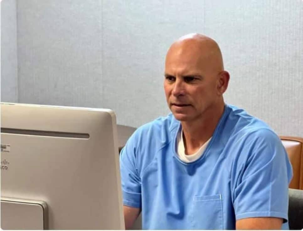 Menendez, usando vestimentas azuis da penitenciária, surgiu em vídeo de uma cela em San Diego, onde se encontra detido.