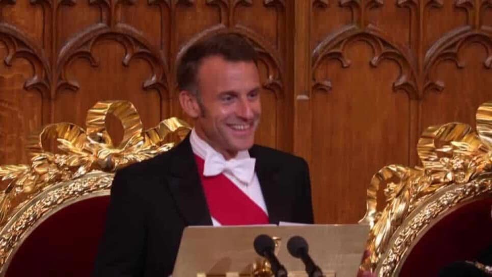 O presidente francês, Emmanuel Macron, foi recebido em um banquete oficial no Guildhall de Londres na quarta-feira (9), representando sua primeira visita de Estado ao Reino Unido desde o Brexit.