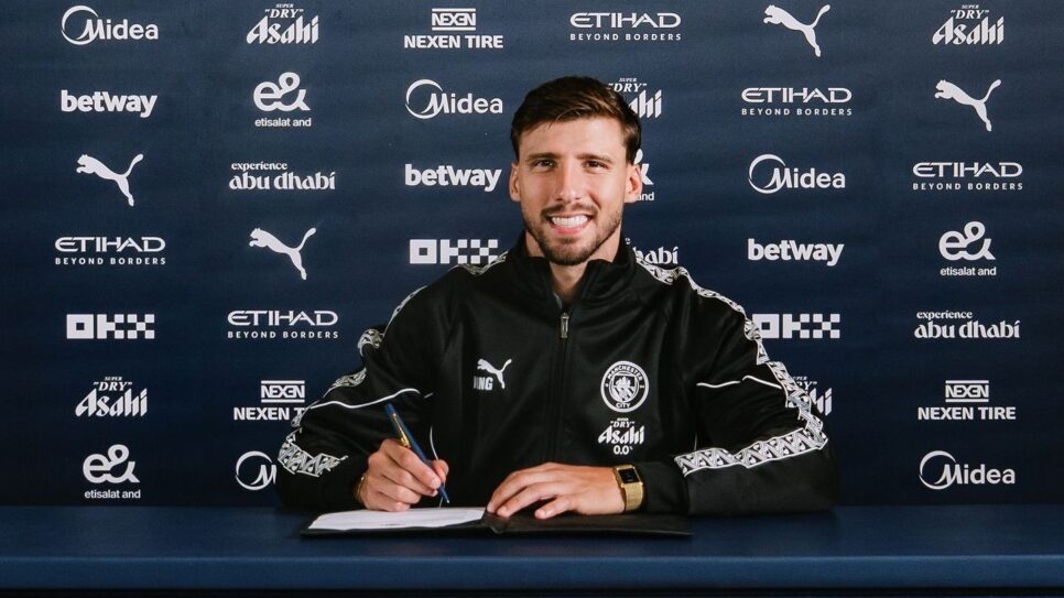 O Manchester City confirmou, nesta sexta-feira (22), a renovação do contrato do zagueiro Rúben Dias, que o manterá na equipe até 2029.