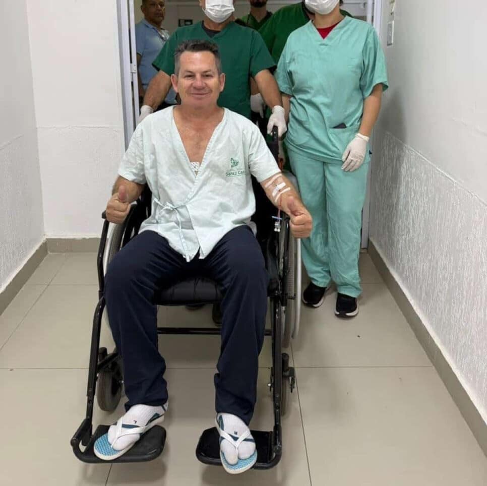 Virgínia Mendes, esposa do governador, publicou imagens dele no hospital – em uma delas, Mauro Mendes é visto em uma cadeira de rodas. Ela afirmou que ele está bem.