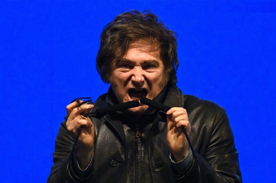Milei participava de ato de encerramento de campanha para as eleições legislativas de meio de mandato da província de Buenos Aires, que ocorrerão no próximo domingo.