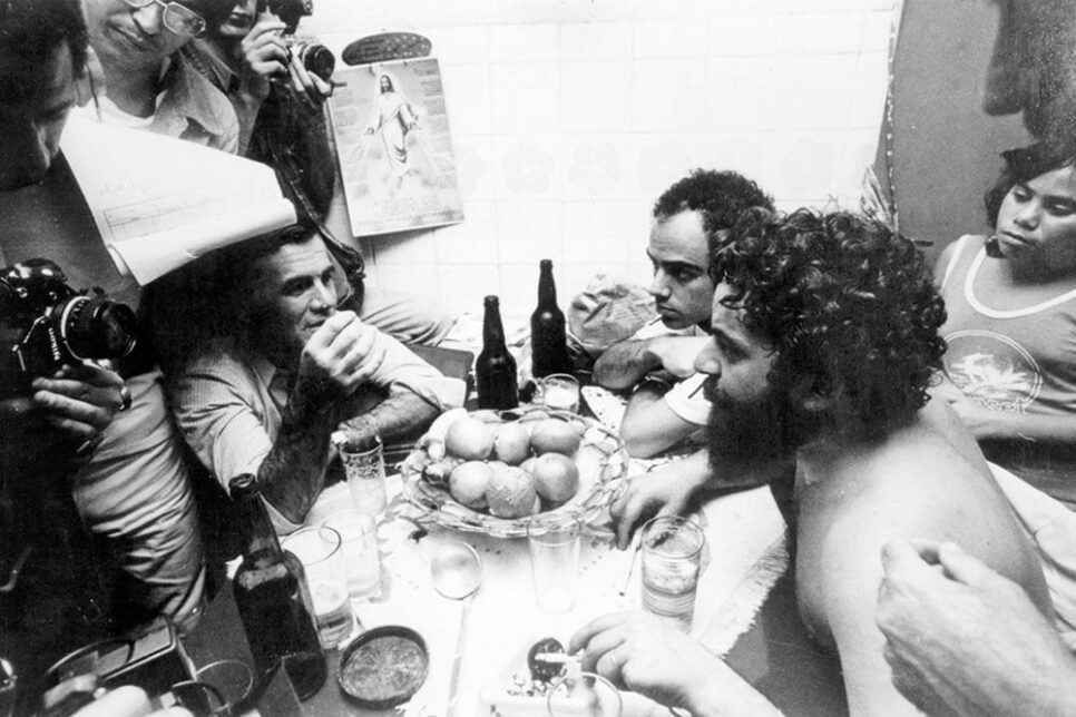 Não acredito que as imagens superem as palavras. Contudo, elas carregam o poder efetivo das simbolizações. Nele, o jornalista Mino Carta dialoga com o líder sindical Luiz Inácio da Silva, em uma mesa de cozinha abarrotada de objetos icônicos: cinzeiros improvisados em recipientes diversos, as antigas “ampolas” de cerveja, uma cesta de frutas e uma imagem de Jesus Cristo cobrindo a cabeça do jornalista. Lula, sem camisa, nesse caso, é mais que uma simples metáfora: é a nudez da notícia e de suas personagens que o jornalista busca, a cozinha de uma casa brasileira sendo o ápice da investigação obsessiva, no limite da intimidade.
