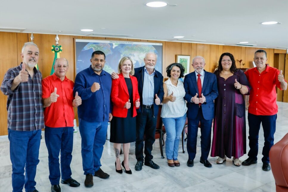 Além de Lula, a ministra-chefe da Secretaria de Relações Institucionais, Gleisi Hoffmann, também esteve presente no encontro.