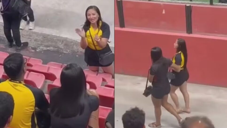 O momento foi registrado por outro torcedor, que filmou a situação das arquibancadas. Nas imagens, a mulher se aproxima do casal e diz: “É para olhar mesmo, para ver quem é você”, enquanto aplaude ironicamente o homem e a amante. Em seguida, ela anuncia o término do relacionamento e chega a agredir o companheiro, diante de várias pessoas que assistiam à cena.