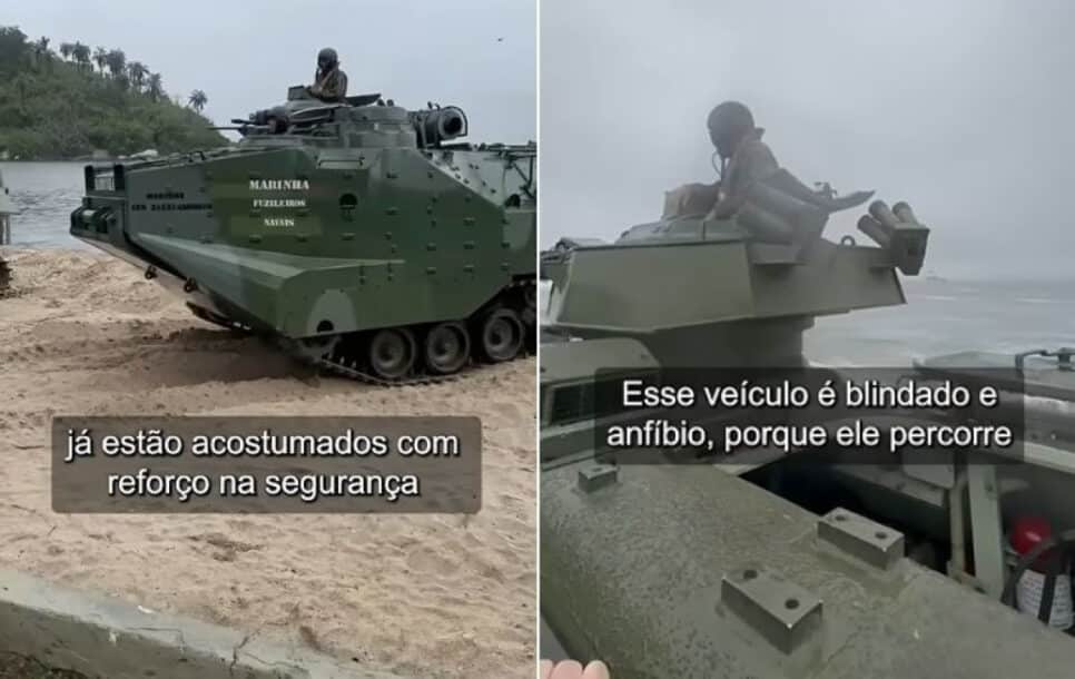 A Cúpula do Brics, evento internacional em realização no Rio de Janeiro, recebeu um reforço notável na segurança: um veículo anfíbio da Marinha do Brasil. O blindado, denominado “CLAnf”, possui a habilidade de se deslocar tanto em terra quanto em água, proporcionando flexibilidade nas operações de segurança.