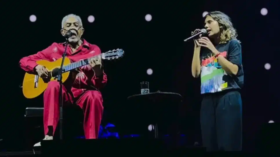 Um dos momentos mais emocionantes da noite ocorreu quando Flor Gil, neta do cantor, subiu ao palco para um dueto da canção “Estrela”, recebendo aplausos calorosos do público.