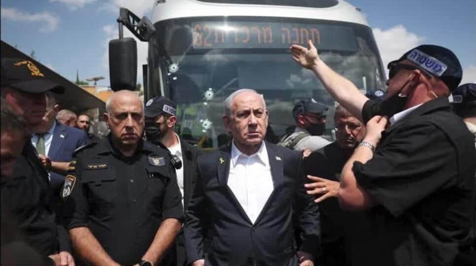 O primeiro-ministro israelense, Benjamin Netanyahu, visitou o ponto de ônibus nos arredores de Jerusalém onde morreram pelo menos cinco pessoas em um tiroteio na manhã desta segunda-feira (8).