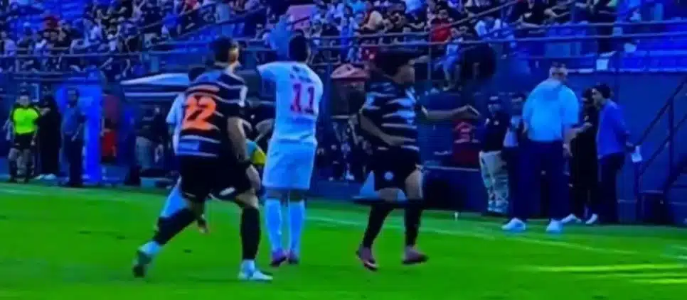 Ao tentar afastar a posse de bola, Matías disparou uma cobrança para a linha lateral e tocou no rosto do treinador, que dirigia o Rey de Copas.