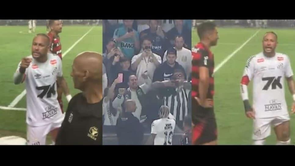 Um torcedor do Santos começou a insultar Danilo do Flamengo e Neymar Júnior interveio para defendê-lo: “Respeita, caramba!”.