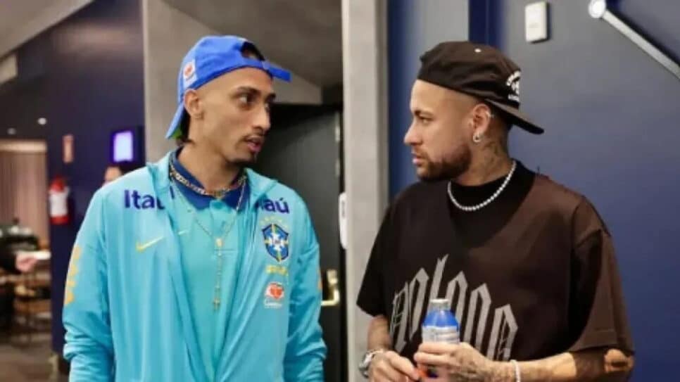 Neymar publicou imagens de sua chegada ao hotel da Seleção em sua conta do Instagram, acompanhadas de fotos com Raphinha, do Barcelona, e Marquinhos, do Paris Saint-Germain, e enviou votos de bom jogo aos dois jogadores.