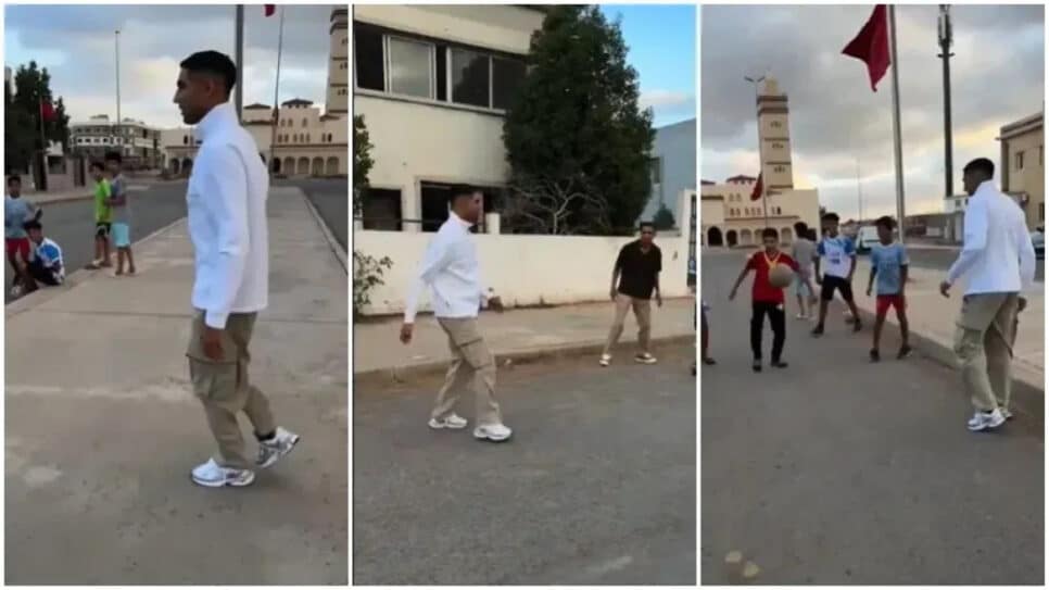 O lateral-direito Achraf Hakimi, do Paris Saint-Germain, chamou a atenção nas redes sociais na quarta-feira (3) ao ser visto jogando futebol com crianças. O jogador interrompeu o caminho para o treino da Seleção Marroquina para se divertir com os pequenos torcedores.
