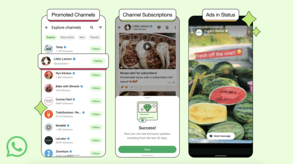 Além das publicações no Status, o WhatsApp implementará a assinatura paga de Canais. A alteração possibilita que criadores ofereçam conteúdo exclusivo para assinantes, semelhante ao modelo do Instagram. A plataforma também permitirá impulsionamento de Canais, com maior visibilidade na aba Explorar mediante pagamento. A empresa enfatiza que a maioria dos canais continuará sendo exibida organicamente.