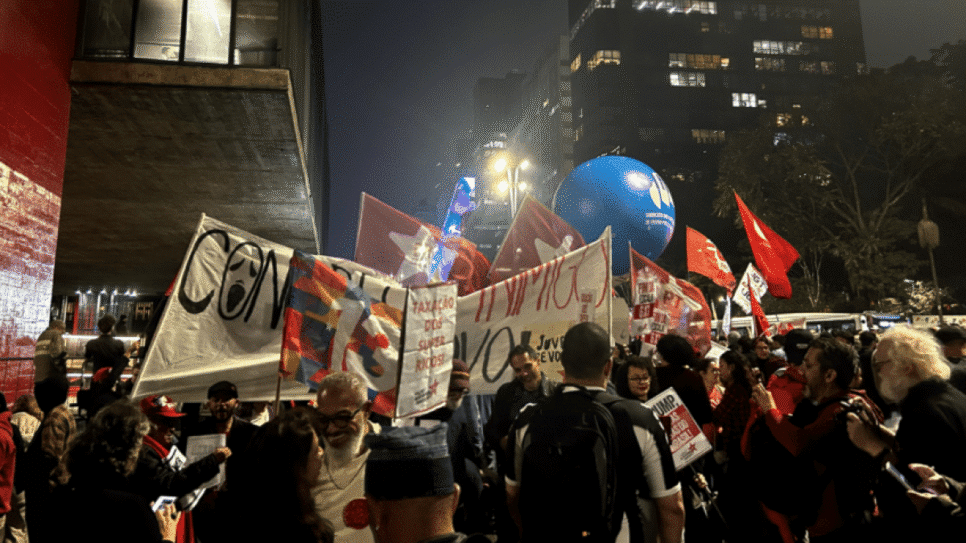 A população protestou em frente ao MASP às 18h, exigindo a tributação dos mais ricos, a isenção do Imposto de Renda para rendimentos até R$ 5 mil e o encerramento do modelo de jornada de trabalho 6×1.