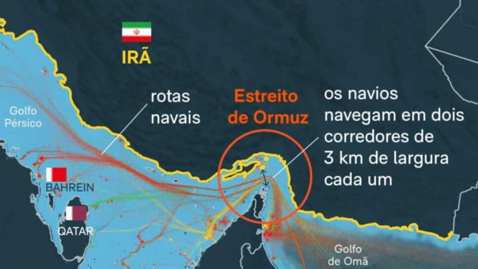 Se confirmado o bloqueio, o barril de petróleo pode ultrapassar os US$ 120 ou US$ 130. Até o momento, desde o início dos ataques, o petróleo global subiu mais de 20%, afirma João Alfredo Nyegray, professor de Negócios Internacionais e Geopolítica da PUC-PR (Pontifícia Universidade Católica do Paraná).