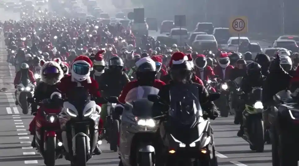 No último sábado (20), centenas de Papais Noéis em motocicletas percorreram as ruas de Sófia, a capital da Bulgária, enquanto a cidade se prepara para as festividades de fim de ano. O evento não apenas trouxe alegria aos compradores de Natal, mas também arrecadou fundos para causas beneficentes, como a compra de material escolar e doces para crianças em lares de acolhimento.