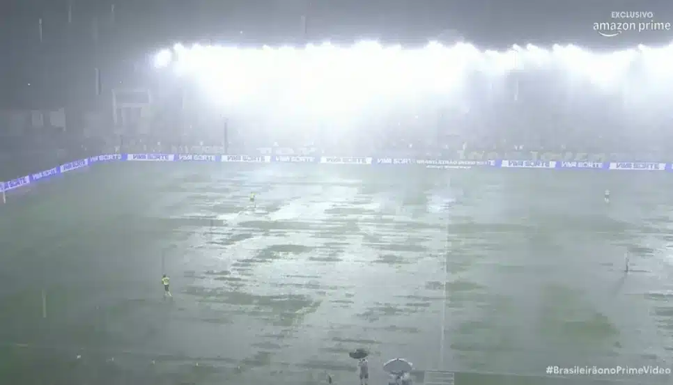 O segundo tempo da partida entre Vasco e Internacional foi adiado devido às péssimas condições do gramado de São Januário, no Rio de Janeiro. O campo estava completamente alagado em decorrência do forte temporal que atinge a cidade na noite desta sexta-feira (28).