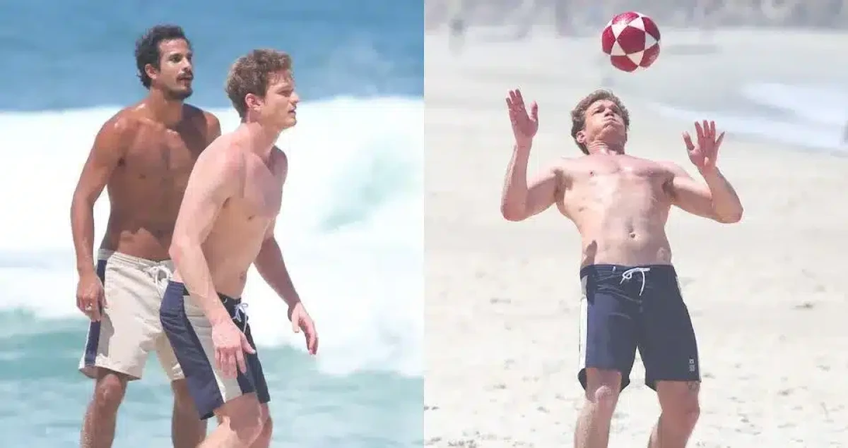 Pedro Novaes e Diogo Novaes, atores e irmãos, passaram a manhã de quarta-feira (17) na praia da Barra da Tijuca, no Rio de Janeiro. Eles jogaram altinha com outros banhistas.