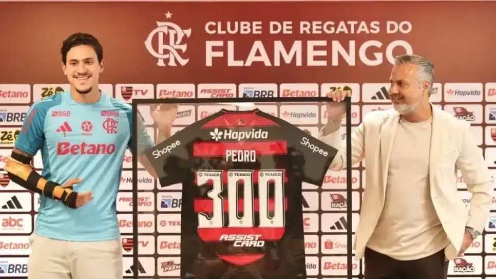 Em recuperação de uma fratura no braço direito, Pedro foi homenageado nesta segunda-feira (3) no Ninho do Urubu, em celebração aos 300 jogos com a camisa do Flamengo. O atacante expressou sua gratidão e projetou conquistar mais títulos pelo clube em 2025.