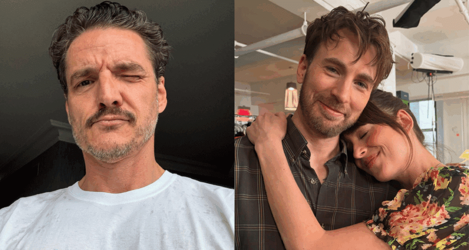Pedro Pascal divulgou uma série de fotos que apresentam os bastidores do filme “Amores Materialistas”, no qual está escalado ao lado de Dakota Johnson e Chris Evans.