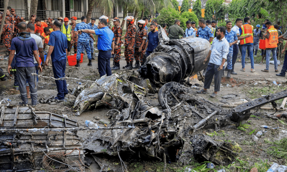 As perdas sofridas pelos membros da Força Aérea, bem como por estudantes, pais, professores e funcionários da Milestone School and College, são irreparáveis. É um momento de profunda dor para a nação, afirmou o chefe do governo interino de Bangladesh, Muhammad Yunus, em comunicado. Um comitê de investigação de alto nível já foi constituído pela Força Aérea para esclarecer as causas do acidente. O chefe do Estado-Maior do Exército e autoridades do governo se deslocaram ao local do acidente, enquanto os trabalhos de resgate continuam.